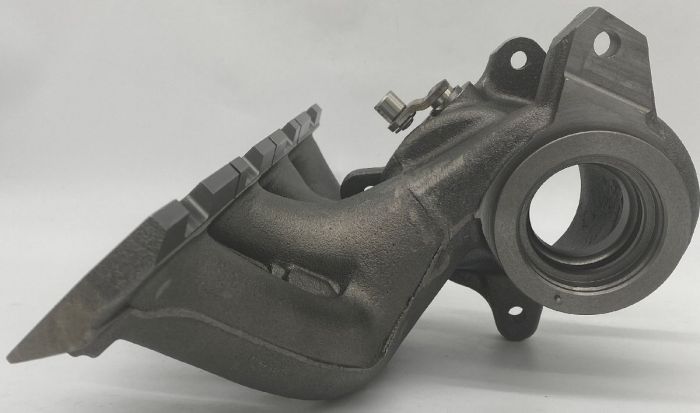 Materiálem je speciální litinová slitina, která musí odolat vysokým pracovním teplotám výfukových plynů, jež se pohybují v rozmezí 750 až 1050 °C.součástí Výfukové svody turbodmychadla BorgWarner K03 53039880141